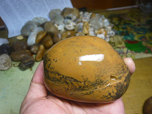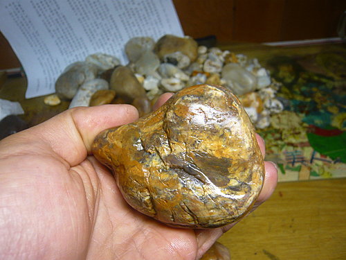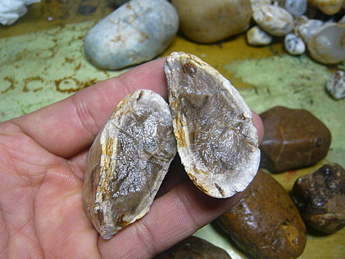 被怪手壓壞的木化...外頭是白灰色....裡頭是咖啡凍...還帶玉隨線