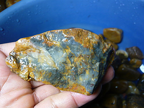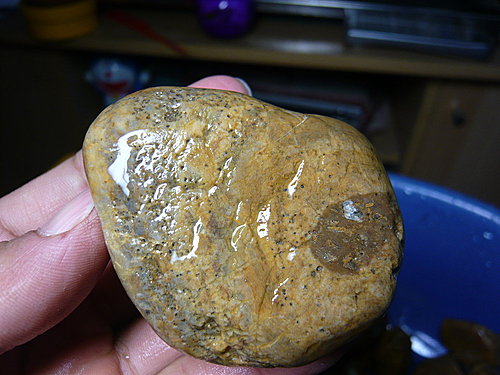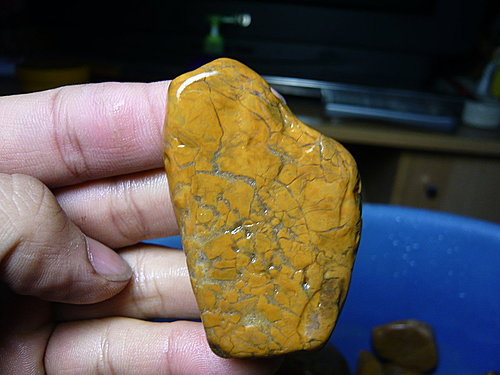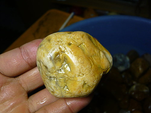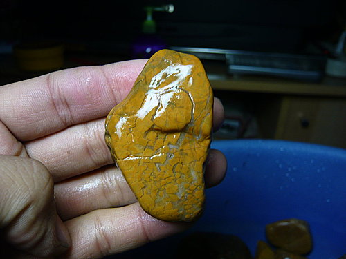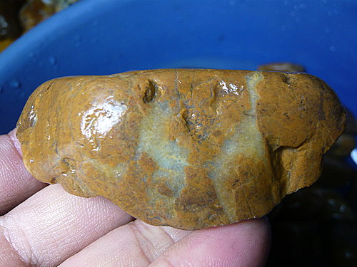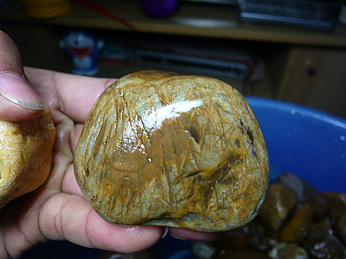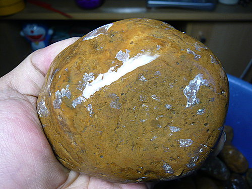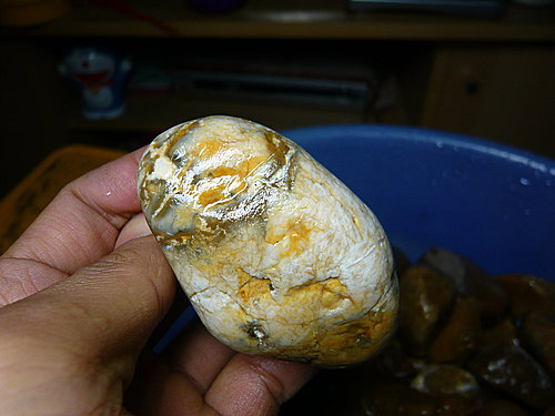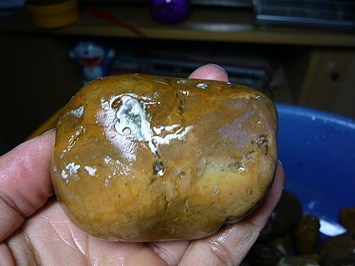 上圖....另一面...不知是否人敲的...裡頭是藍色的凍質